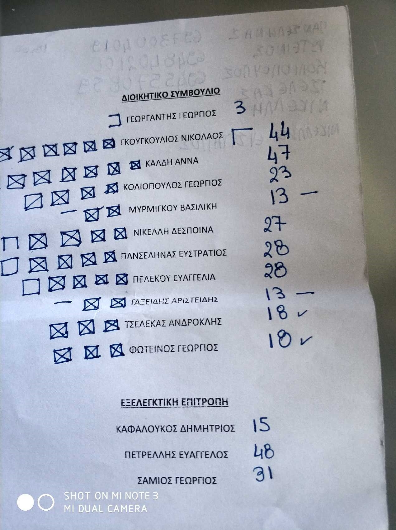 Δημοσιεύουμε την κατάσταση-που μας έστειλε η Άννα Καλδή- με τον αριθμό των ψήφων που έλαβαν οι υποψήφιοι για το ΔΣ και την ΕΕ του Συλλόγου σεισμοπαθών Βρίσας κατά τις χτεσινές αρχαιρεσίες.