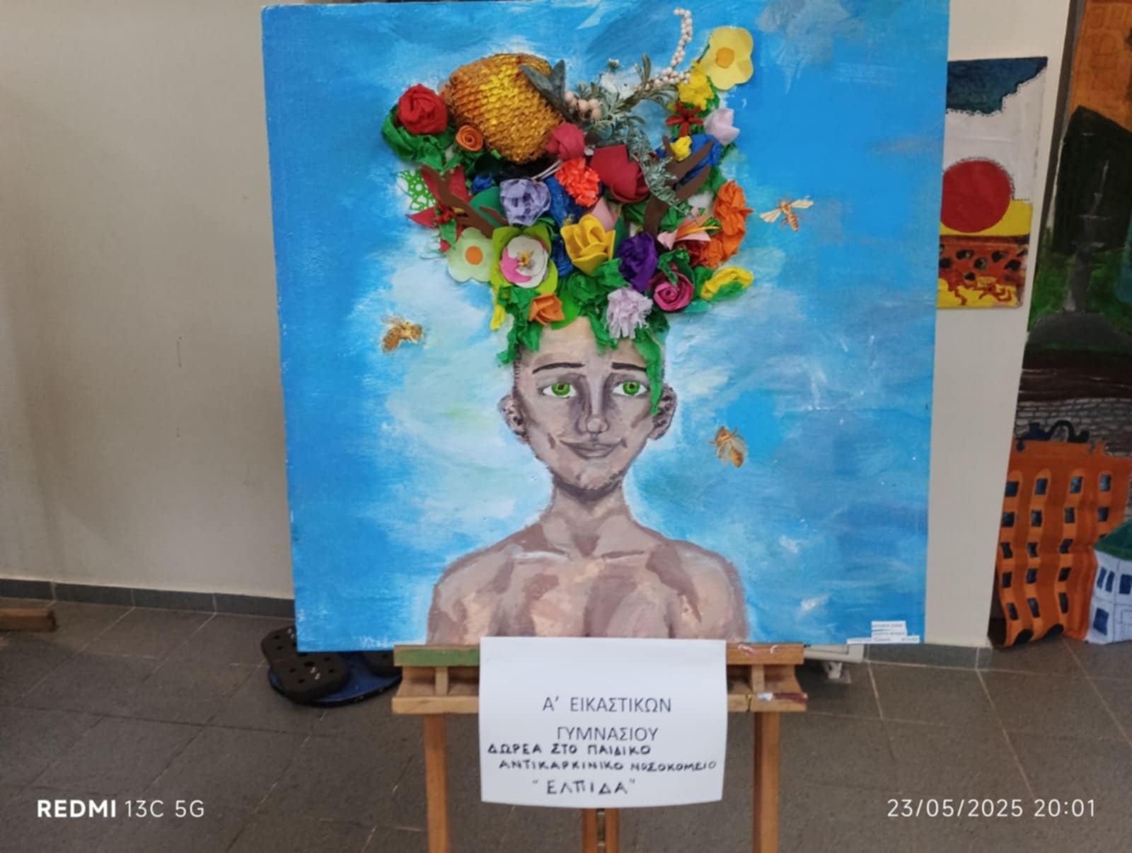 Επίσης ο Μιχάλης συνεργαζόμενος με δυο ακόμα συμμαθητές του φιλοτέχνησαν τον παρακάτω πίνακα τον οποίο πρόσφεραν στο παιδικό αντικαρκινικό νοσοκομείο “Η ΕΛΠΙΔΑ” το οποίο και το έκανε αποδεκτό για να στολίσει τους χώρους του.