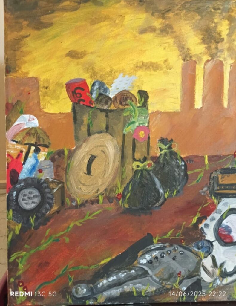 Ο Μιχάλης πήρε μέρος στον Πανελλήνιο διαγωνισμό ζωγραφικής, που προκήρυξε ο Ερυθρός Σταυρός, με θέμα την ανακύκλωση και απέσπασε το Β΄ πανελλήνιο βραβείο με το παρακάτω έργο του!!!