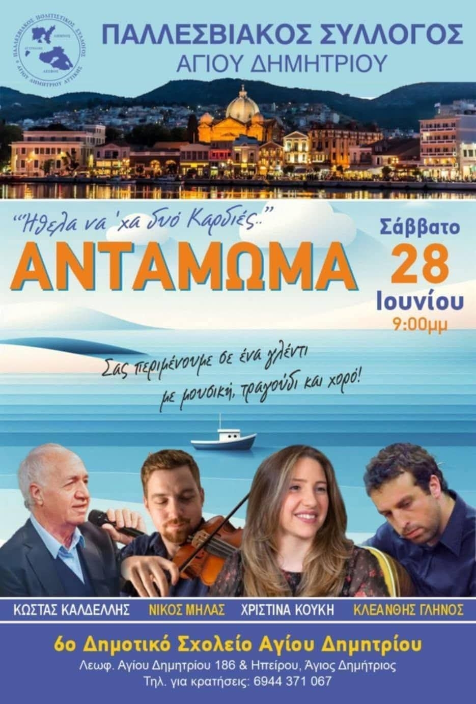 Το Σάββατο 28/6 ήμασταν καλεσμένοι στο Μυτιληνιό Αντάμωμα που έγινε στον Άγιο Δημήτριο οπού πρόεδρος του Παλλεσβιακός Σύλλογος Αγίου Δημητρίου