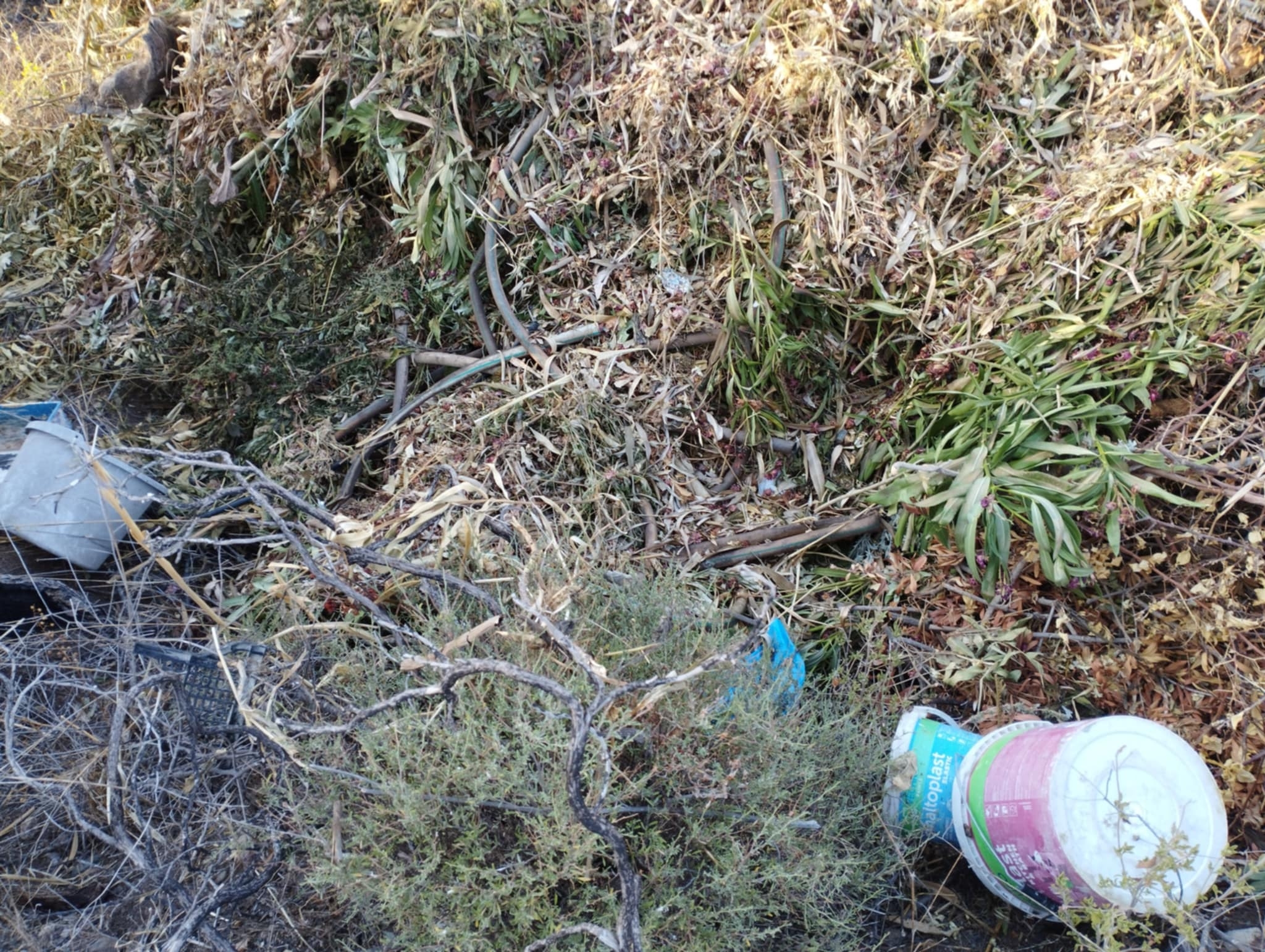 Σε γειτονικό με δικό μου ελαιόκτημα έχουν ρίξει μεγάλη ποσότητα φυτικών και άλλων απορριμμάτων όπως φαίνεται στις παρακάτω φωτογραφίες.