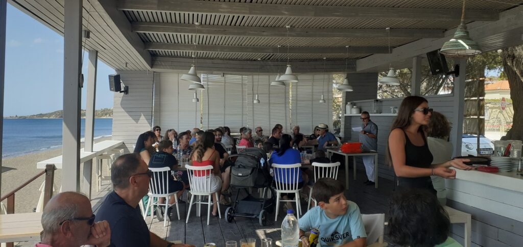 Για μια ακόμα φορά θέλουμε να ευχαριστήσουμε τη Ρία και και τον Μανώλη Ευσταθίου για τη φιλοξενία της εκδήλωσης στο υπέροχο κέντρο «Θάλασσα», δίπλα στο απέραντο γαλάζιο των Βατερών, καθώς και για την δωρεάν προσφορά των καφέδων και των αναψυκτικών.