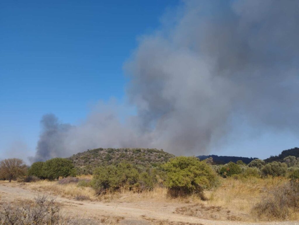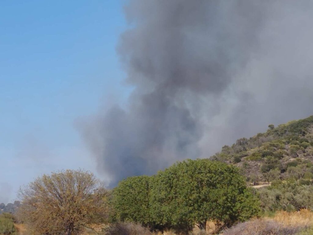 Συνεχίζει η φωτιά, η οποία πέρασε απ’ τις περιοχές Παλιάμπελα κ.λπ. και έφτασε μέχρι το πλάτωμα της Σαραβατνούς. Πιθανόν εκεί να την έκοψαν πυροσβέστες και εθελοντές.