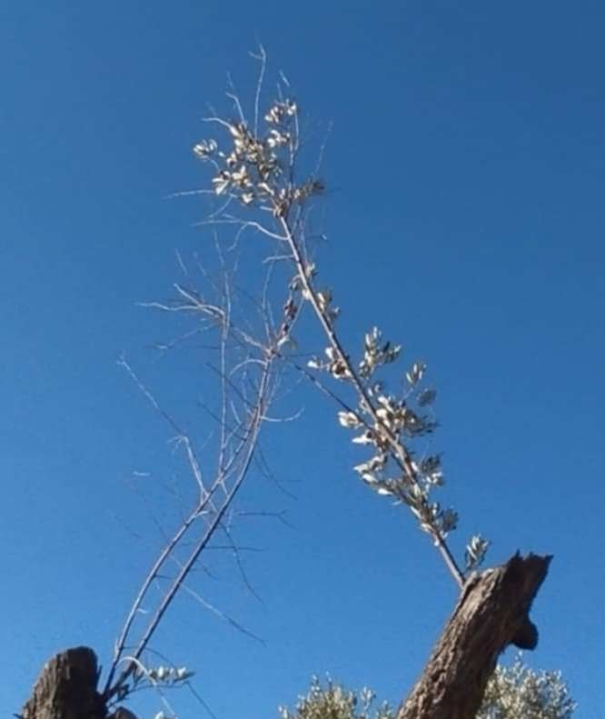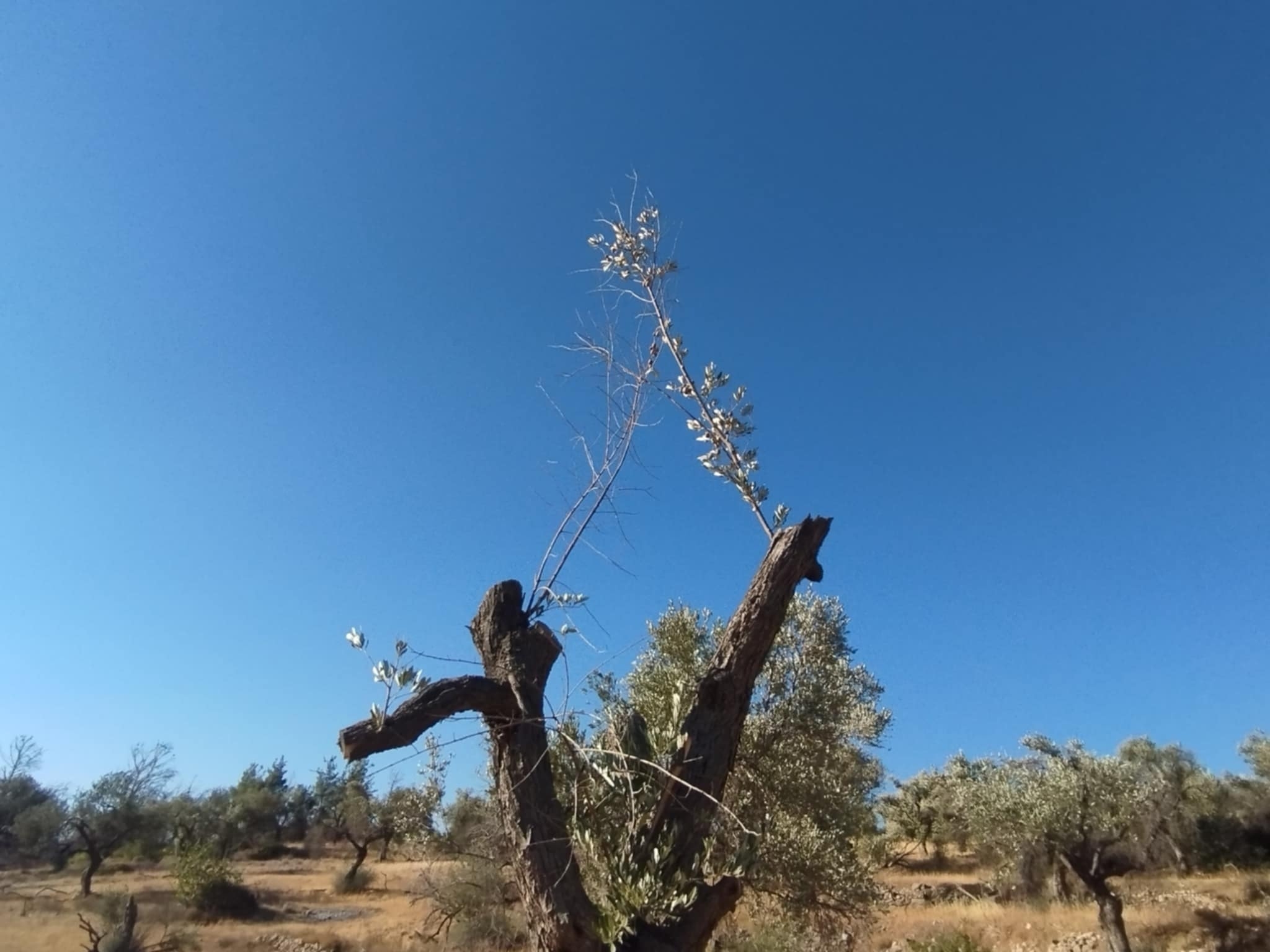 Ένα αποκαΐδι κούτσουρο με ένα τόσο δα κλαδάκι γεμάτο, ικανοποιητικού μεγέθους, ελιές!
